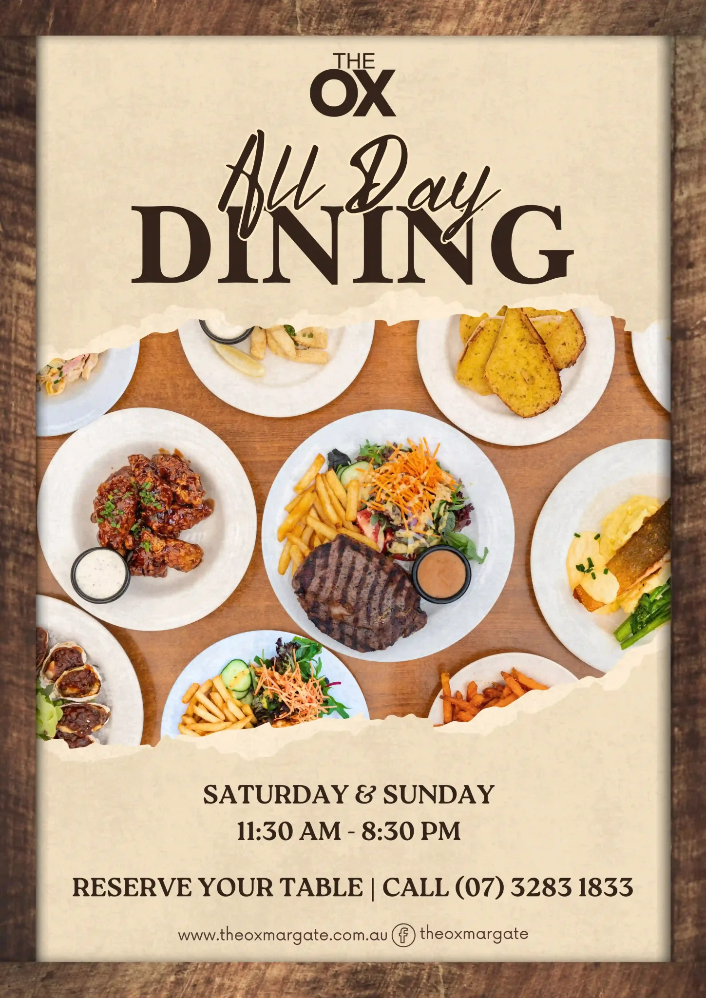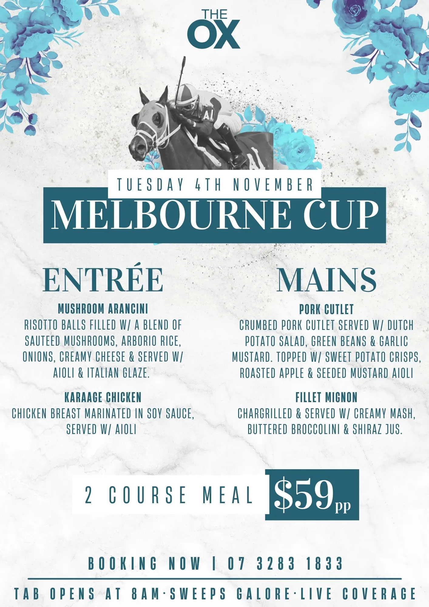 For all Table Bookings, Phone us on (07) 3283 1833
